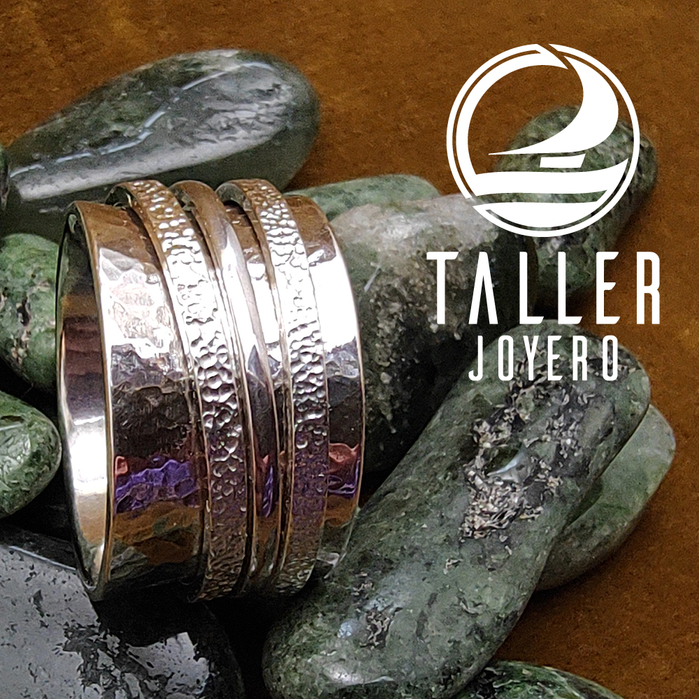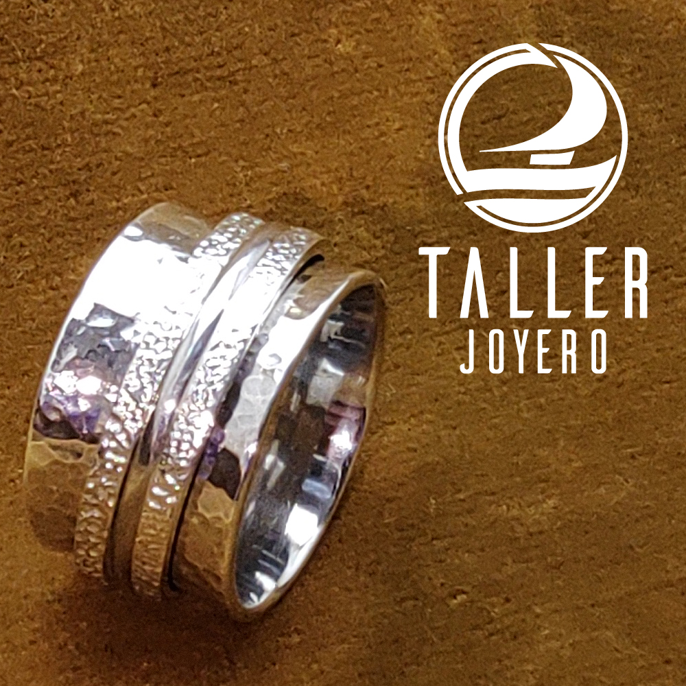 Este hermoso diseño revela la creatividad y se distingue por las texturas y la forma de los anillos interiores de este enillo. el Anillo de relajacion 06 es un diseño propio de Taller Joyero